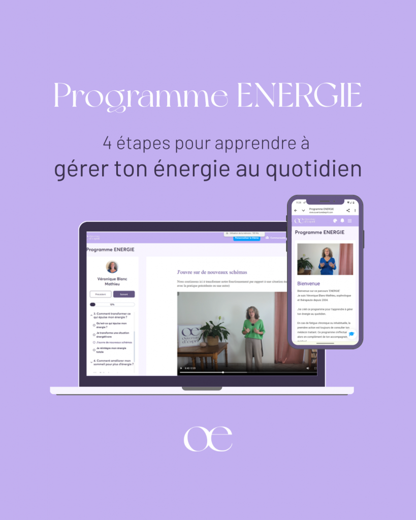 Un programme en ligne complet pour retrouver de l’énergie avec des pratiques issues de la sophrologie et de la kinésiologie, sous forme de vidéos et d’audio.